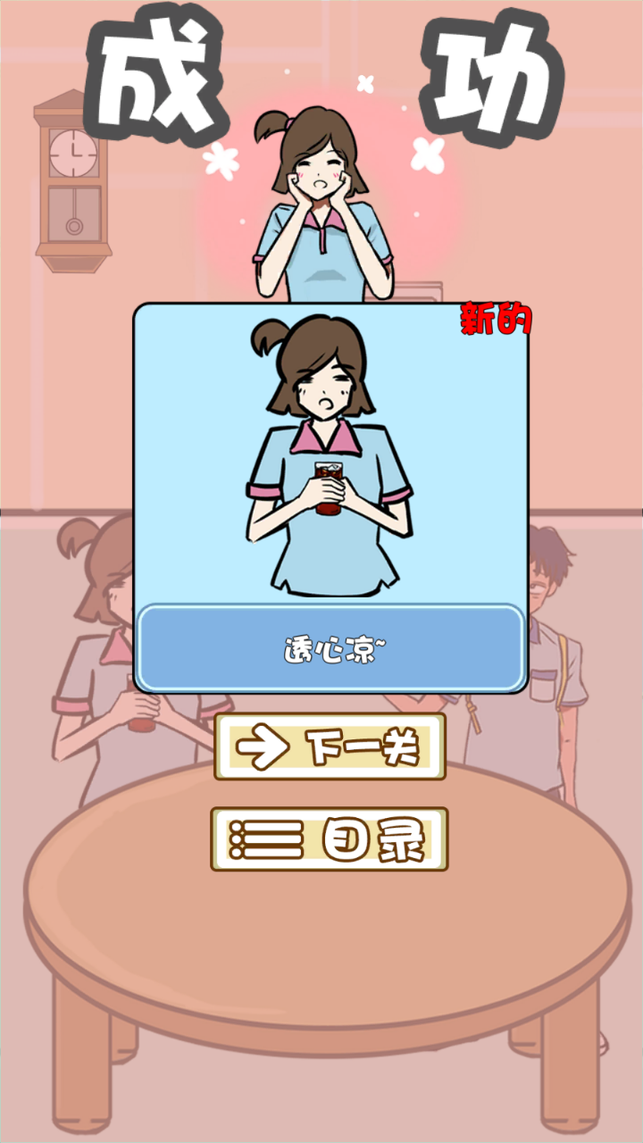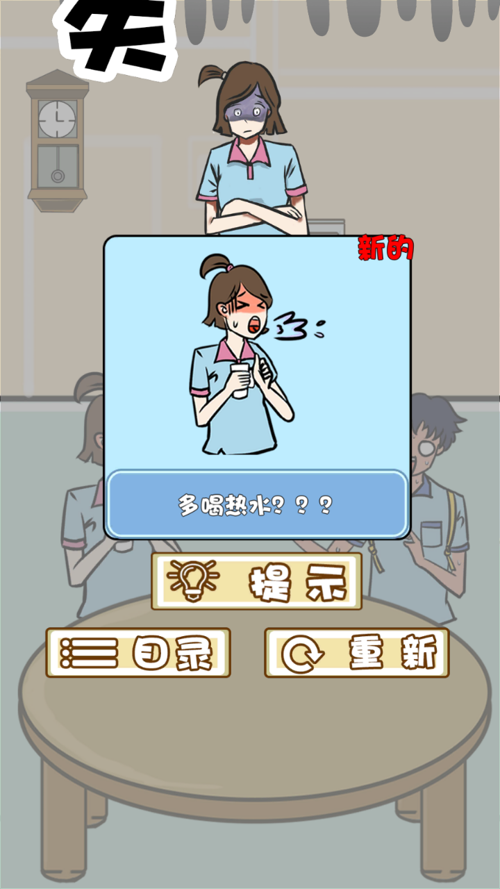 如游戏中最为致命的女朋友来大姨妈关卡。在布置好的场景中,桌上有热乎乎的热水,冰箱里是可乐和杯子,玩家可以通过点击获得这几个至关重要的道具,接下来,就要看玩家如何选择了。热水或是可乐?都不是!如果玩家直男的选择了热水,那么“多喝热水”将成为你的死亡绝句,如果玩家天真的选择了可乐,那么“你是不是不关心我?”的素质三联也将让玩家关卡失败,那么,如何才能通过关卡呢?玩家只有通过在场景中四处点击,找到写有关心话语的便利贴,把粘粒铁和可乐一起交给女友才能够圆满过关,技能表达自己的担心,也能让女友心满意足喝碳酸饮料,这样的过关方式,可以说是意料之外,又情理之中了~