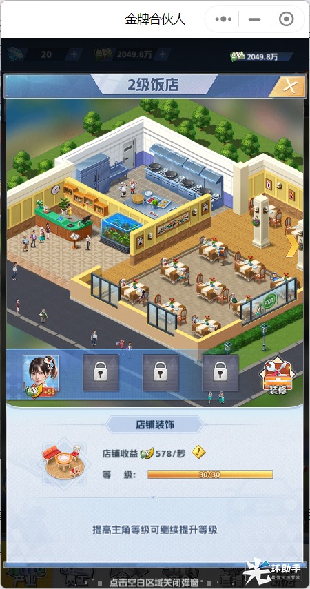 玩家可以通过角色等级、店铺装饰等级提高商业建筑的收益,从而提升赚钱速度。