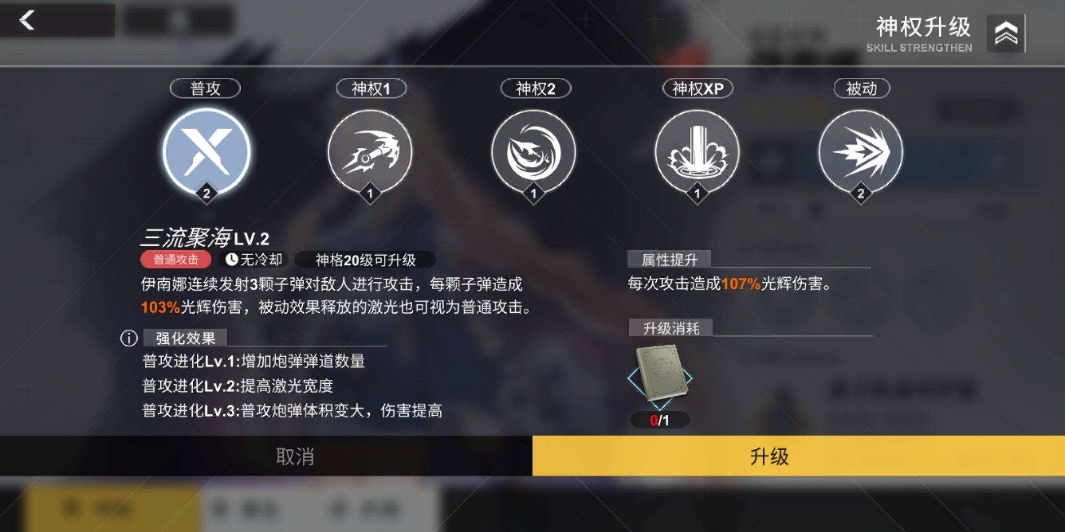 伊南娜连续发射子弹对敌人进行攻击,每颗子弹造成光辉伤害,被动效果释放的激光视为普通攻击。