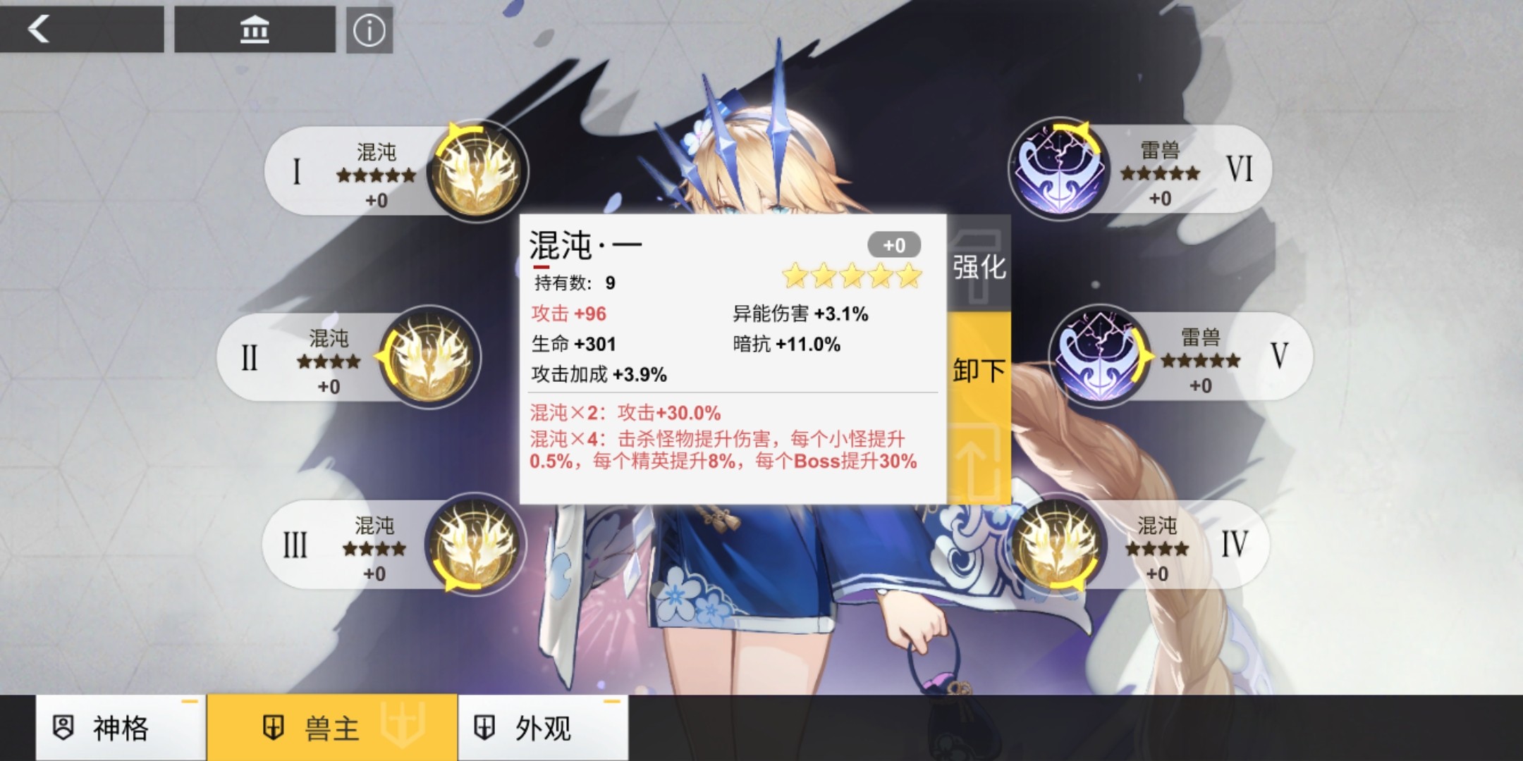所以说只能选择目前打高层本和打boss关公认的高加成兽主