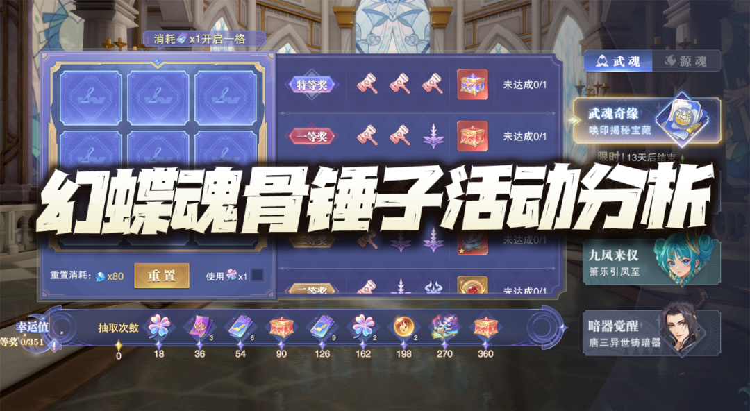 今天游戏又按期上线了新版的武魂奇缘活动,当然锤子肯定是避不开了,而且这次的活动官方在规则上又做出了一定程度的调整,接着咱们就具体来分析一下这个活动的大致成本和性价比。