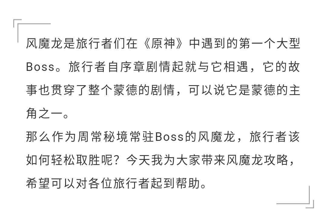 1.对风魔龙的致胜诀窍就是刚才说过的“输出要尽可能快,从破盾到打龙头毒血削减血量一气呵成”,这些在剧情里温迪挑战风魔龙的教学关都有所体现。不过建议各位在攻略普通风魔龙秘境时,不要学剧情用弓箭打龙头毒血那一套。可以用上你练度最高、培养得最好的近战输出角色,在风魔龙被破盾倒地后攀爬上龙头对毒血进行攻击,伤害非常可观。