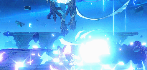 该技能有一个短暂的施放动画,之后旅行者所在的平台会出现裂纹,这时站在平台上的角色会受到持续且递增的伤害,也就是说不能在同一个平台上滞留太久。可以通过平台两边的风场飞起来,再进行左右转移更换平台,以避免地板“烫脚”的伤害。