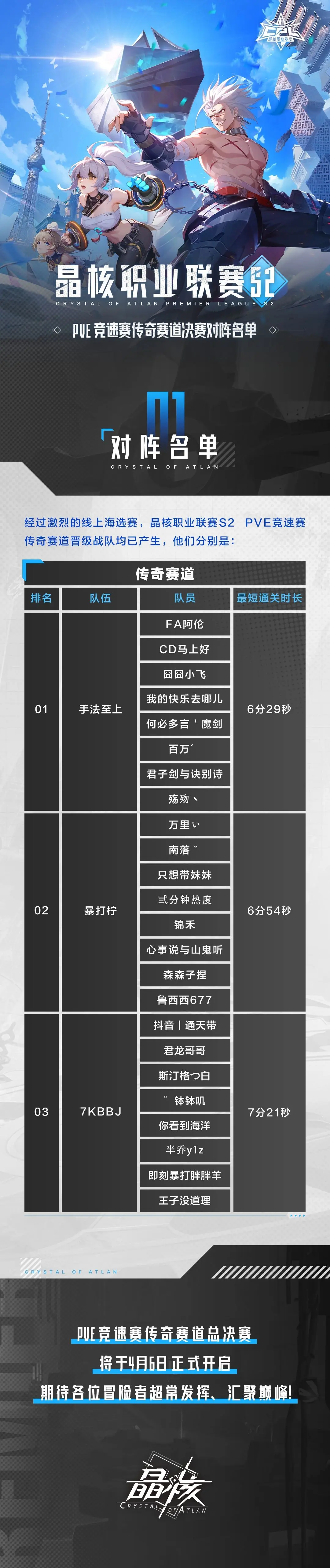经过激烈的线上海选赛,晶核职业联赛S2 PVE竞速赛传奇赛道晋级战队已产生,欢迎冒险者戳长图了解更多!