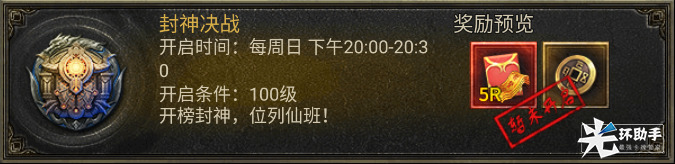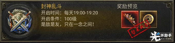 奖励预览:乱斗之王称号、封神币(用于系统消耗、商城购买)。