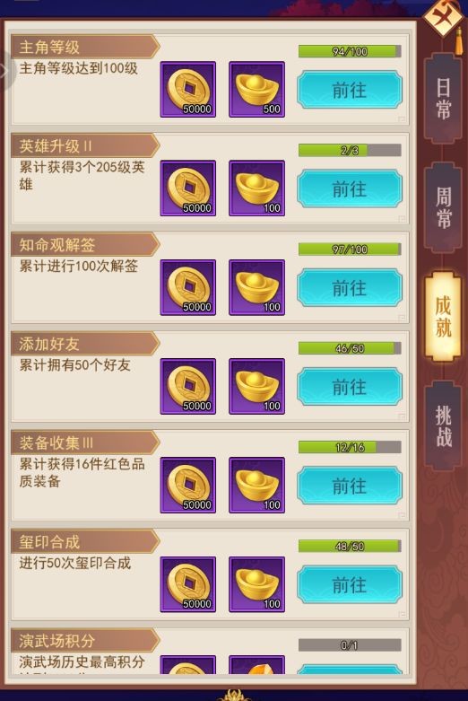 完成指定的成就就能获得大量元宝,有些成就很容易就能完成啦,快去看看吧