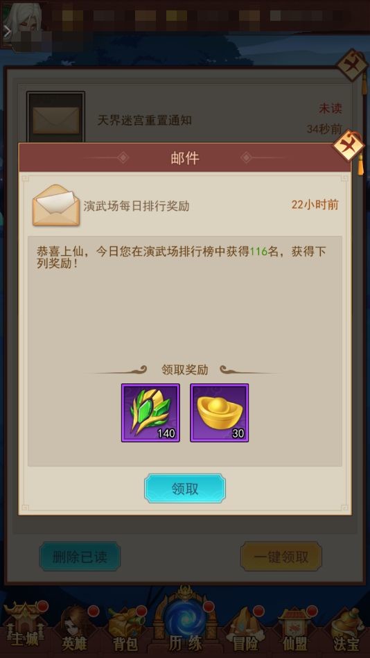 演武场每日会根据排行榜发放结算奖励,排名越高,获得的元宝越多