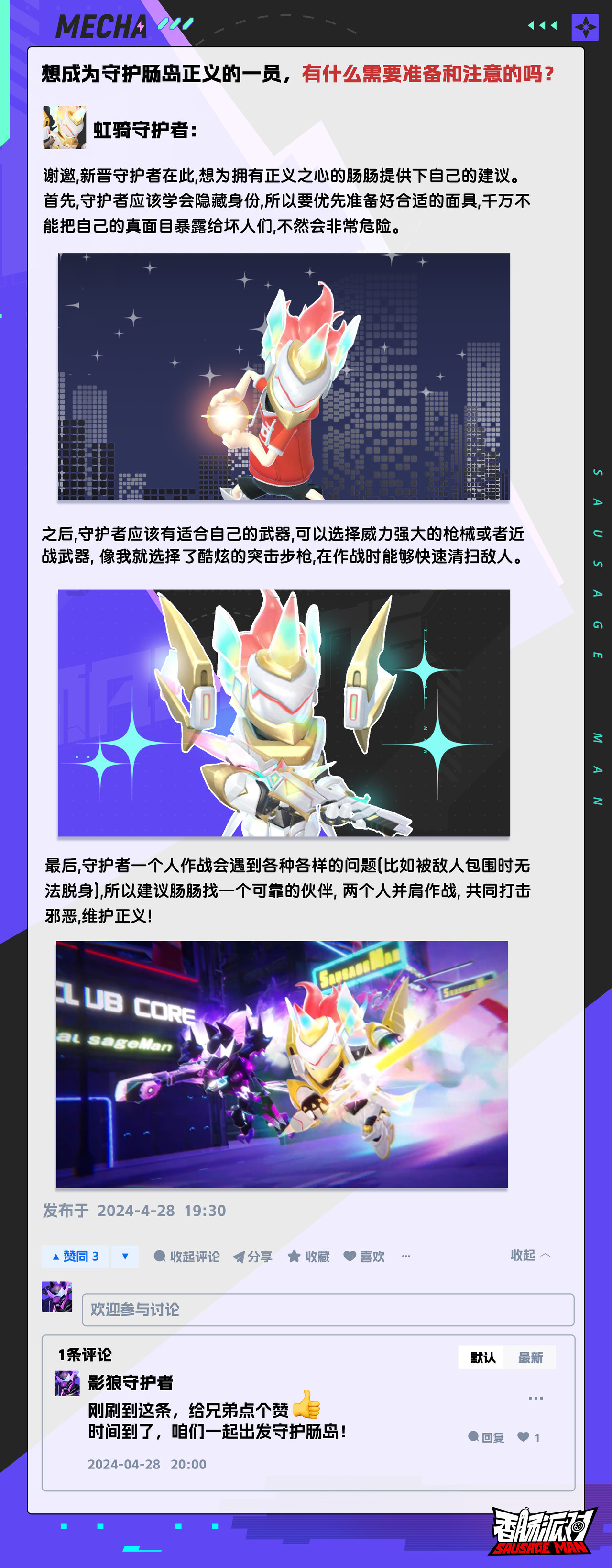 想成为守护正义的使者需要哪些准备呢?虹骑守护者给出了他的答案,他将与影狼守护者一起出发守护肠岛!