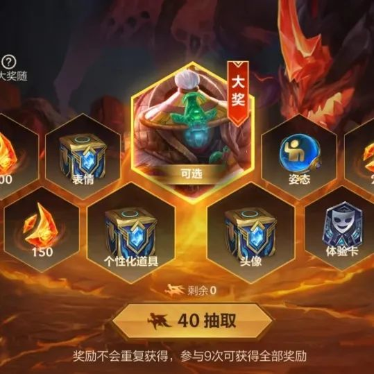 奖励:精选皮肤幸运抵扣券,心花怒放道具,团魂卡,皮肤姿态甄选宝箱,史诗皮肤限时体验自选奖励