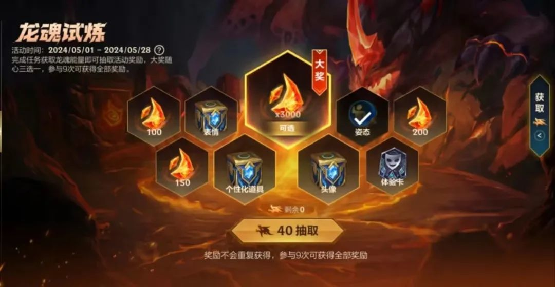龙魂试炼第二阶段开启!截止至5月28日23:59分,召唤师完成对应阶段的任务,即可获得宗师级钓鱼训练师 贾克斯、龙魂水晶*3000和专属大奖随心三选一!