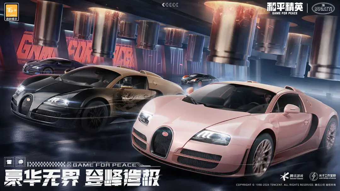 布加迪联名载具皮肤在海岛亮相啦!咱们的和平车库也是又多了一款豪车呢。本次上线的车型是布加迪的经典之作——布加迪威龙Veyron Grand sport vitesse。