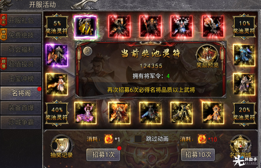 5. 每招募1次武将可获得1点招募积分,积分可用于名将商城中兑换稀有道具
