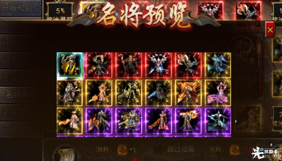 《齐天大战神》超级武将等你来激活,前往开服活动-【名将阁】招募赵云、关羽、张飞、马超等无双武将和绝世神将,用于激活武将幻形,提高切割和生命加成!