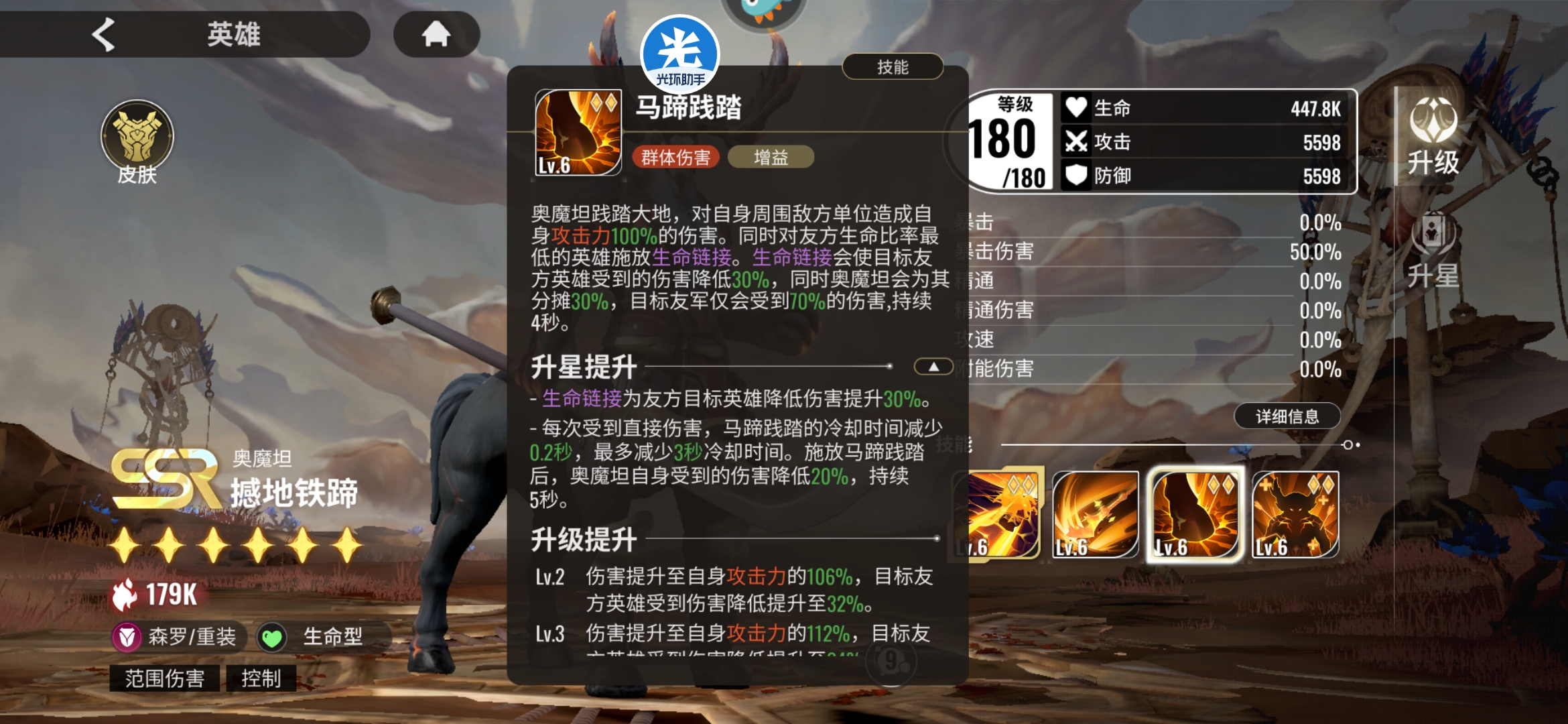 还有就是他的被动马蹄践踏碰到一些星联的疾射流(aoe阵容) 以及一些吃连击伤害的角包时会给他自身增加一个回复效果 还能链接队友 分摊队友的伤害