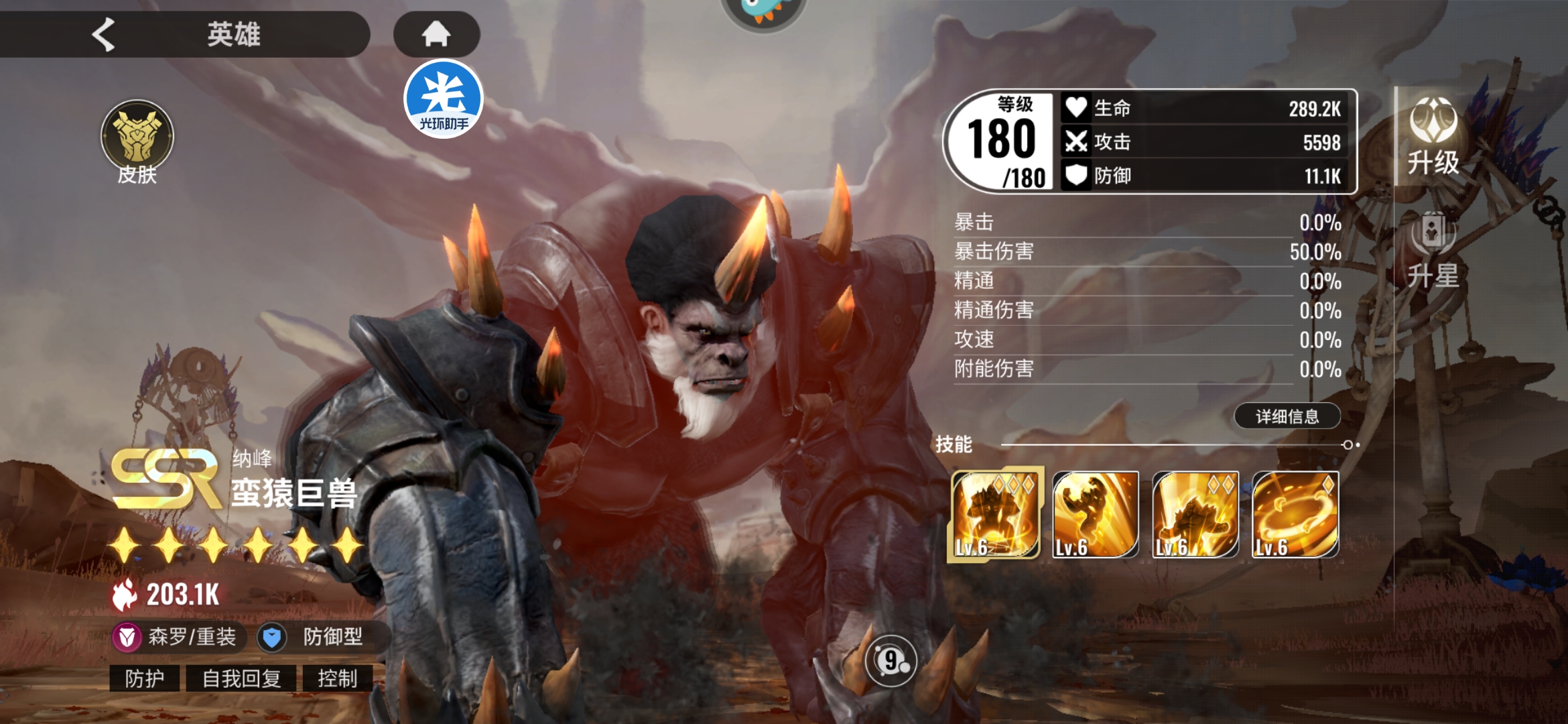 苍穹霸主在面对召唤生物比较多的时候 (御控流) 比较有优势 因为大招命中别人会返还能量所以他能很快刷起自己大招 盾和防御系数就会长得很快 而我们的撼地铁蹄在面对召唤流生物这种情况时就比较尴尬了 被动根本一点作用都没有 蛮猿巨兽需要五星才能叠防御 可以为周围友方提供50%的防御力