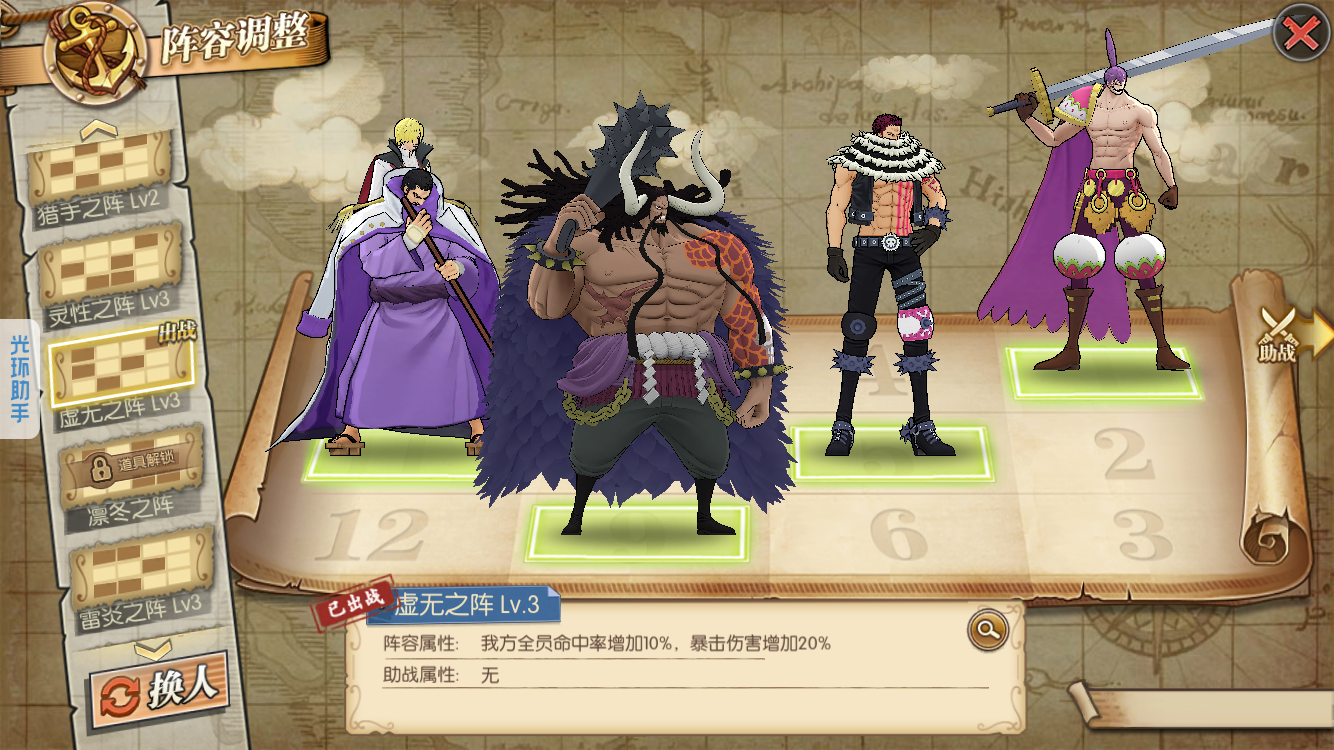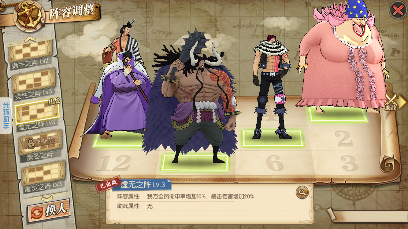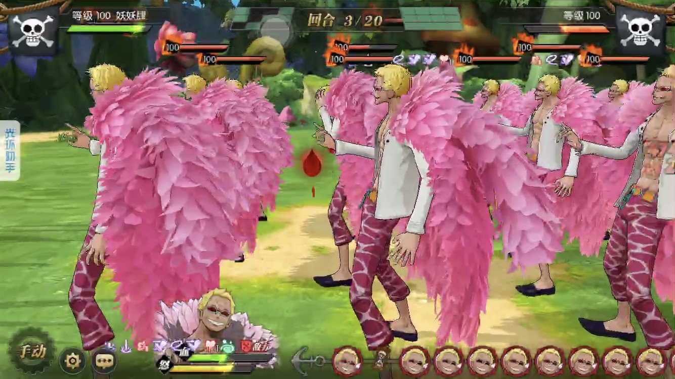 ①:人物全上高输出的人物,正常输出。不要拖到5-6个回合被累加减速效果,造成被移除;必要时可上乔巴通关。②:主线打藤虎时,注意自己的魂玉数,藤虎随机增加人物的技能魂玉时,适当的把技能的被动状态关掉,调整技能。