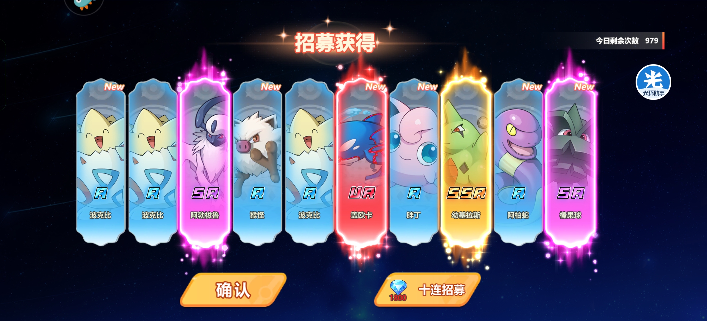 通关第一章加上兑换码给的第二发十连出的