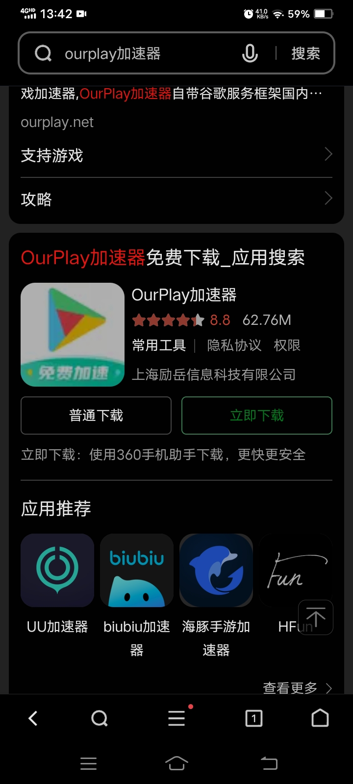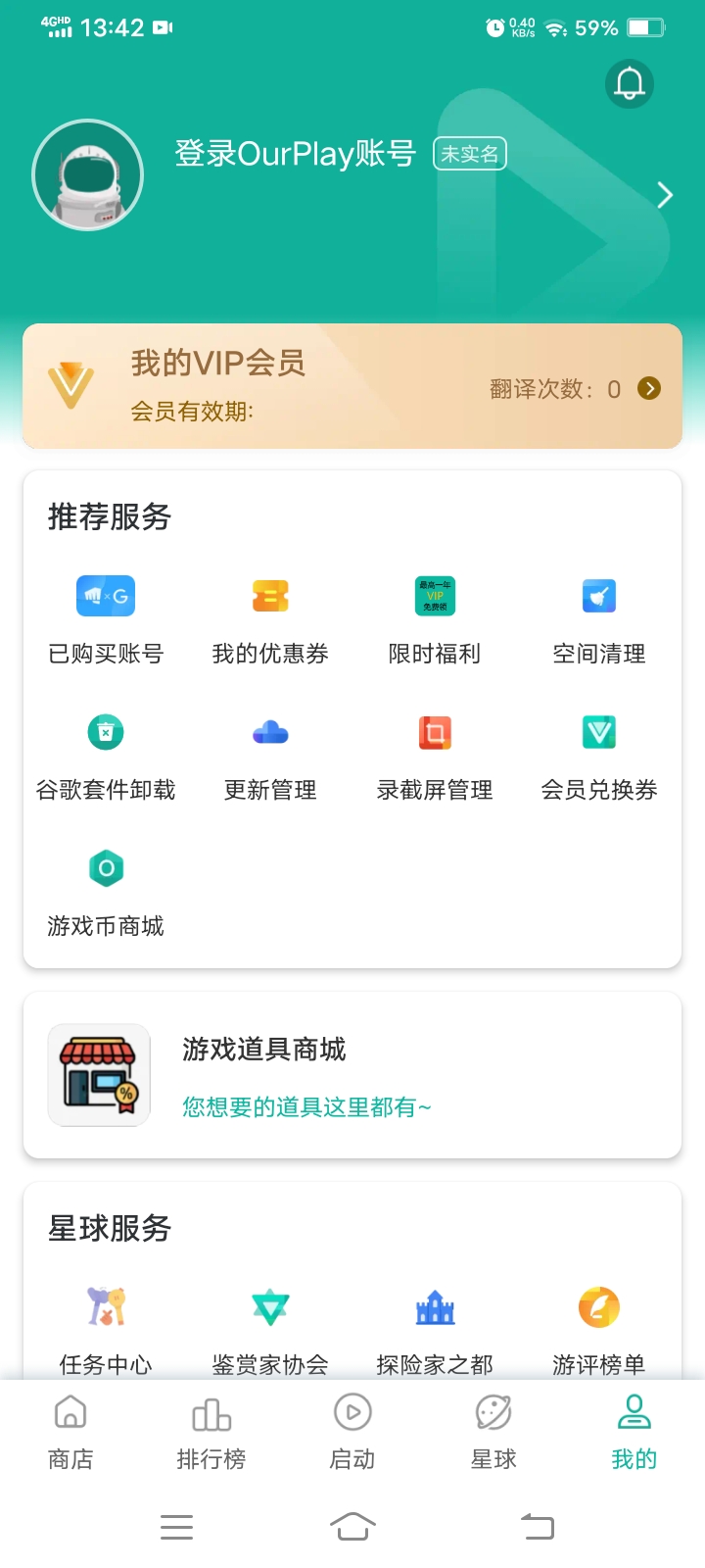 然后点击谷歌游戏账号(ourplay加速器自带谷歌框架结构只需要自行下载就行了)