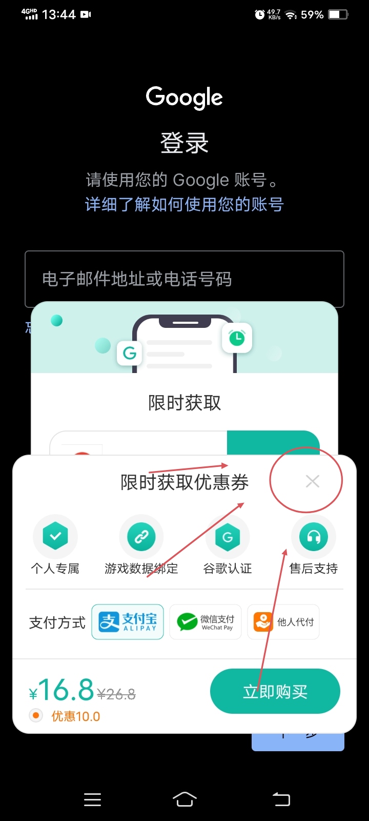 点击叉叉,不要购买