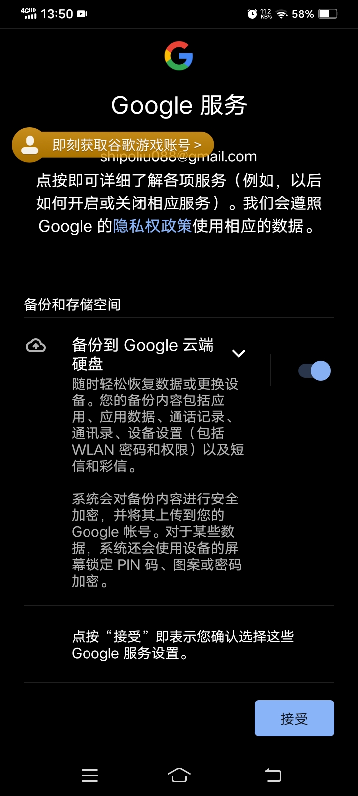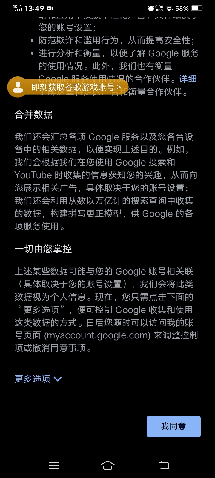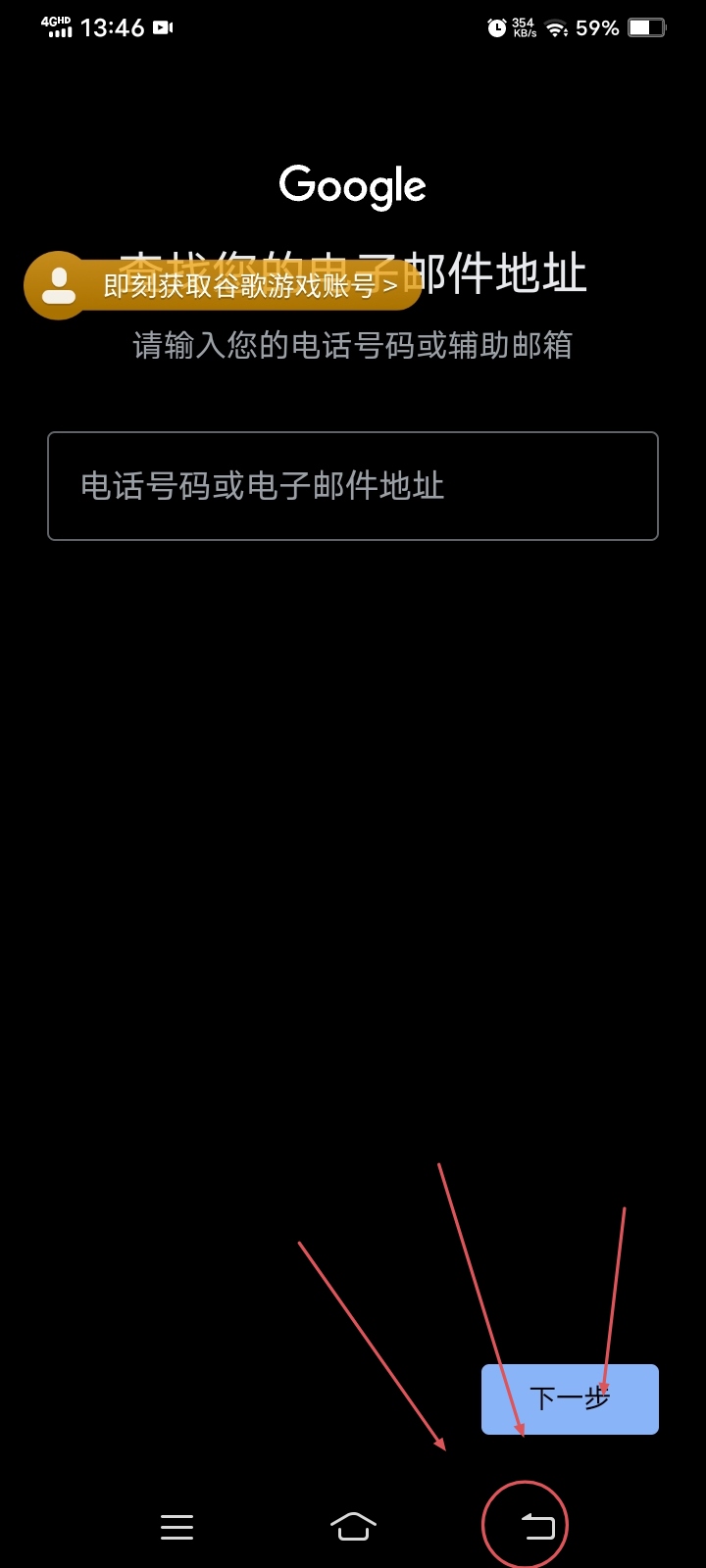 点击谷歌游戏账号
