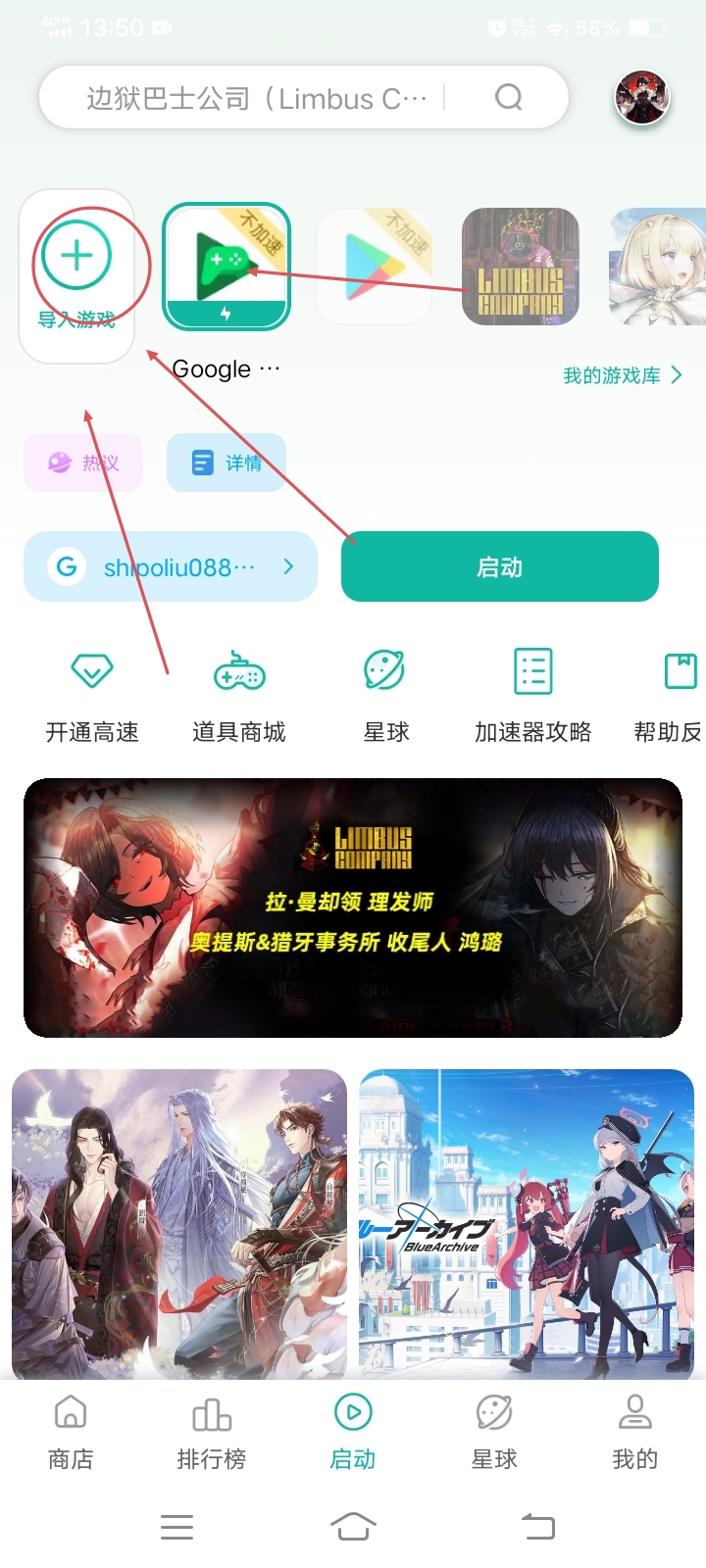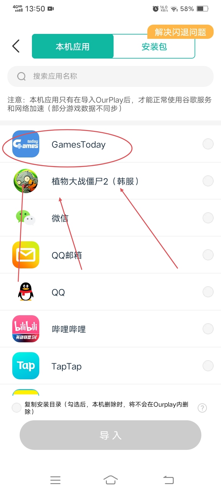 5.创建完谷歌游戏账号,接着把 gamestoday 导入 ourplay加速器