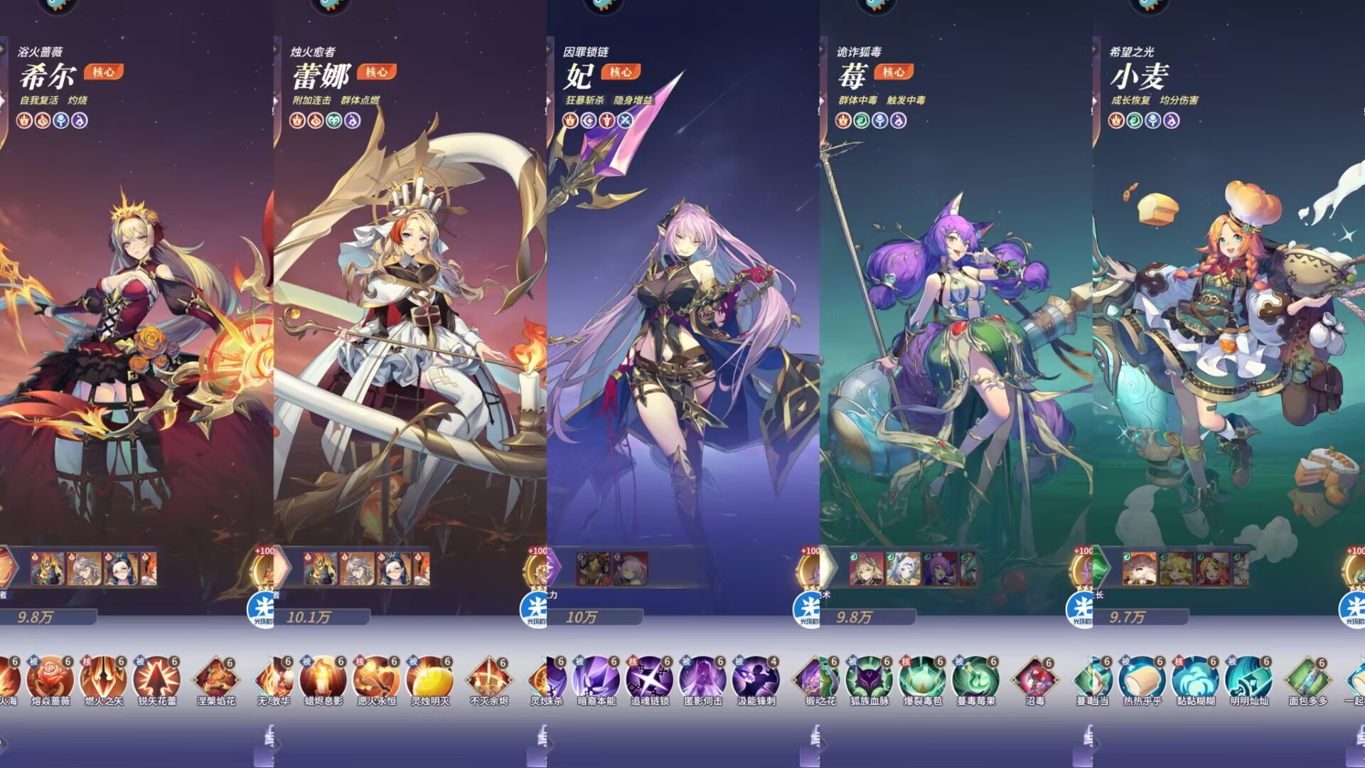 ②真伤+灼烧队混搭推荐:希尔+蕾娜+妃+霉+小麦。
