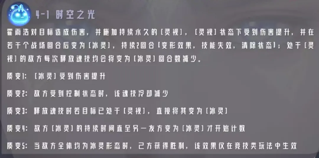 接着第二点当地方全体均变为“冰灵”时,我方会直接获得胜利,这点就和之前SP宁荣荣的领域持续X个回合后直接胜利的创新差不多,都是给PVP战斗提供了一个优先级更高的获胜条件,所以从这点来思考,无疑SP霍雨浩在PVP端的竞争力也是极强的。
