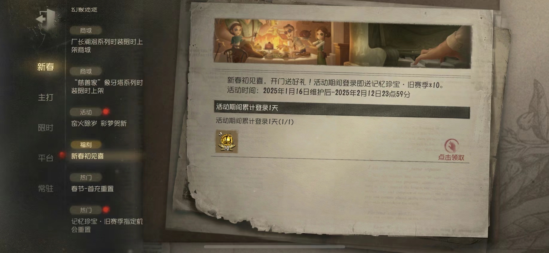别忘了登录游戏可以领取