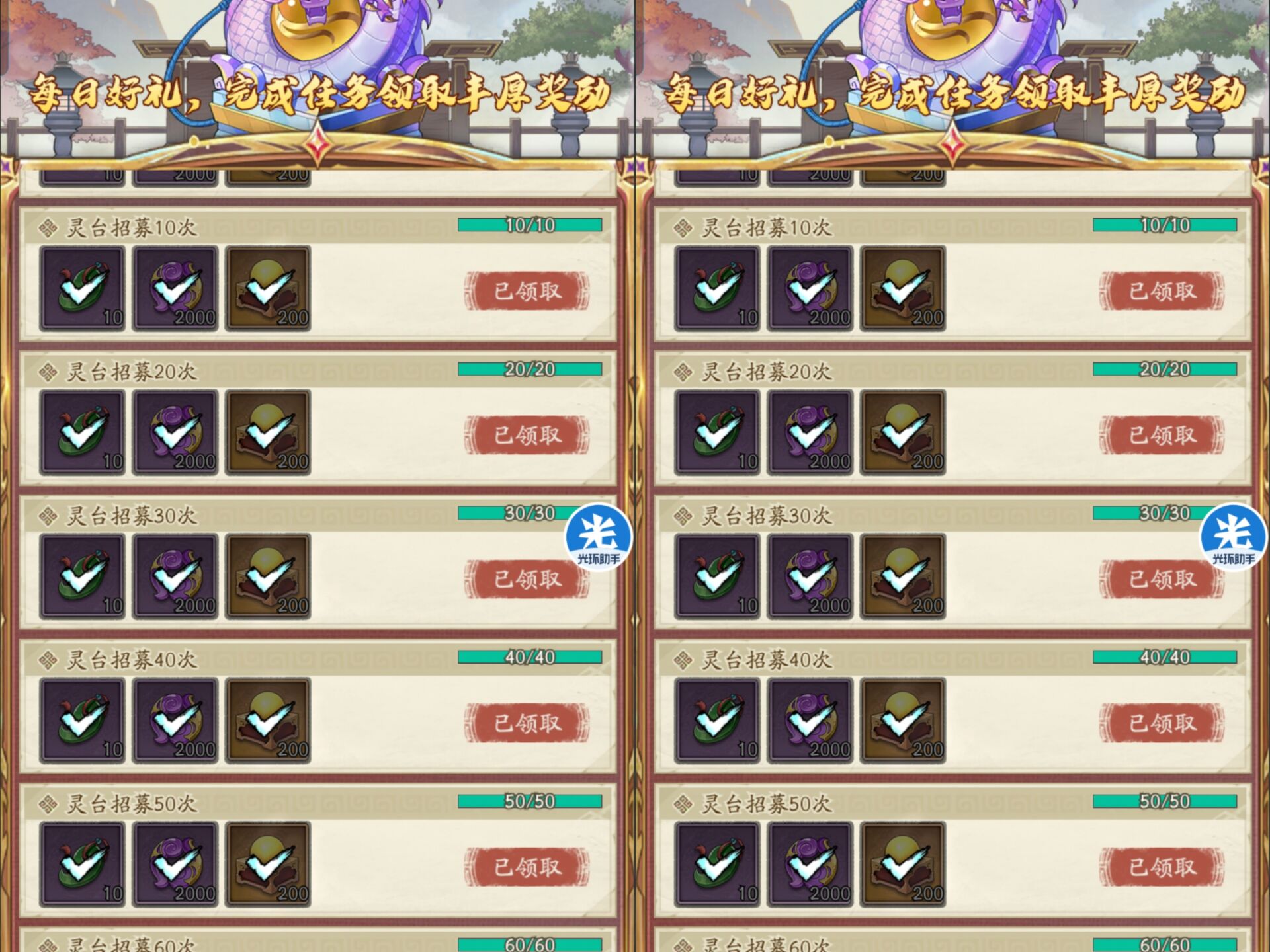每天全部任务做完可以拿:200个青石+4万玉玺升级材料+4000个突破丹。