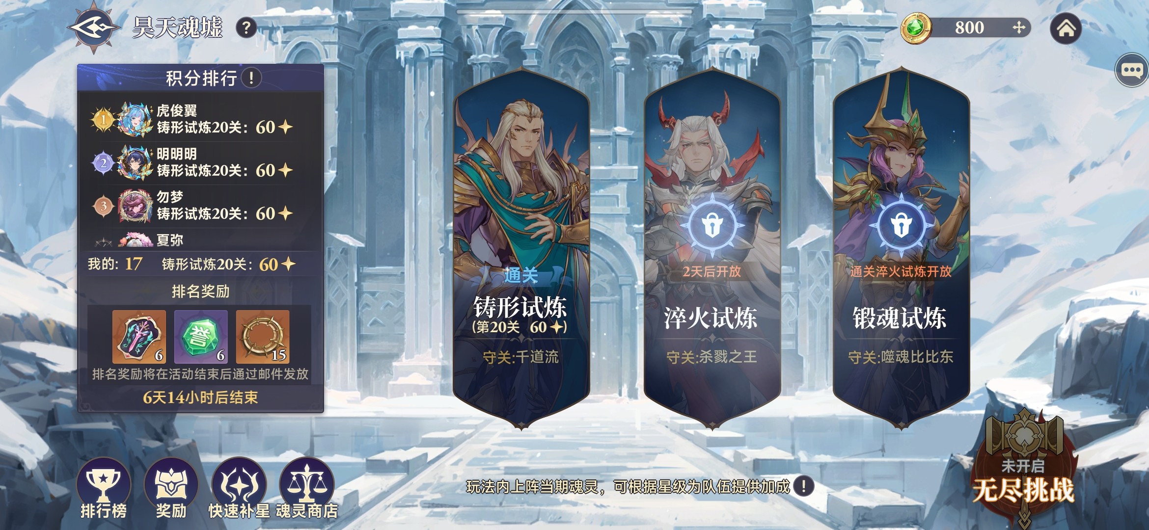 这是全新玩法,采用无尽挑战模式,玩家根据排名情况获得奖励。首先,进行【铸型试炼】、【淬火试炼】、【锻魂试炼】,全部挑战成功后,解锁【无尽挑战】。