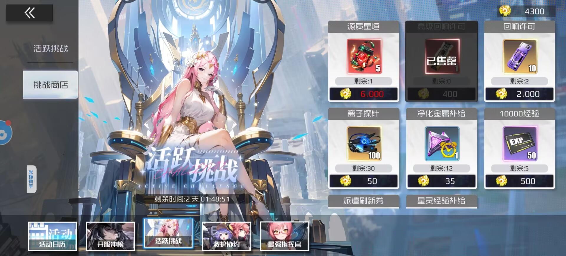 开服第一天就有的活动商店,可以通过完成日常活动获得【日耀晶体】来兑换资源。
