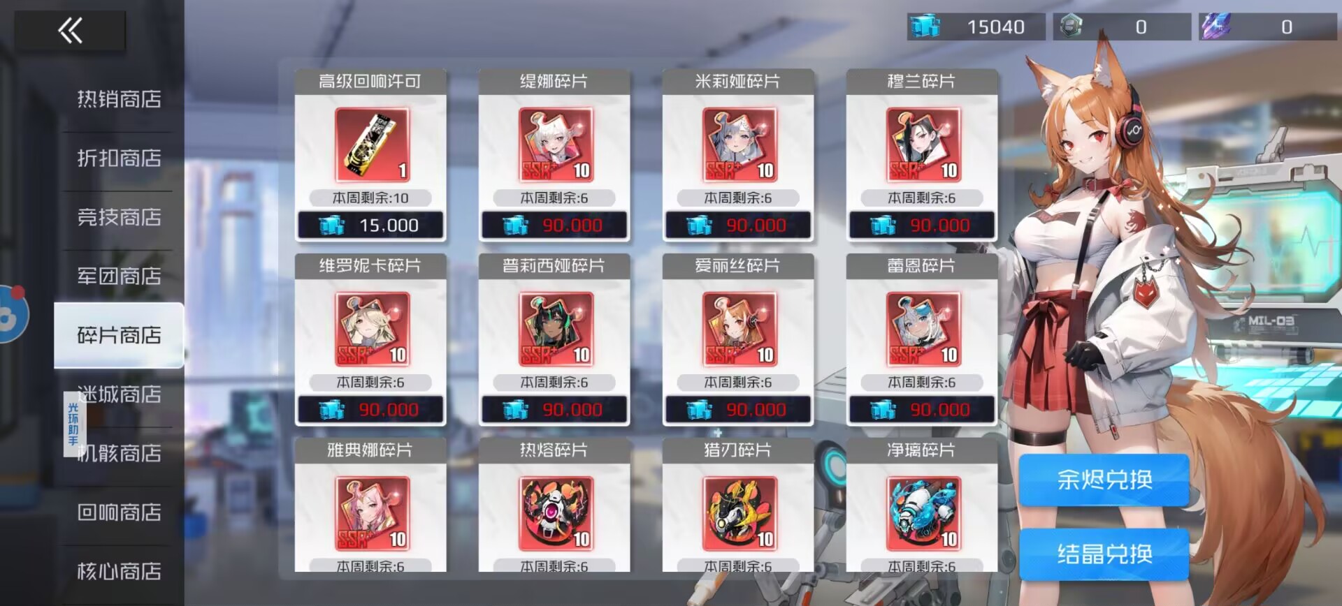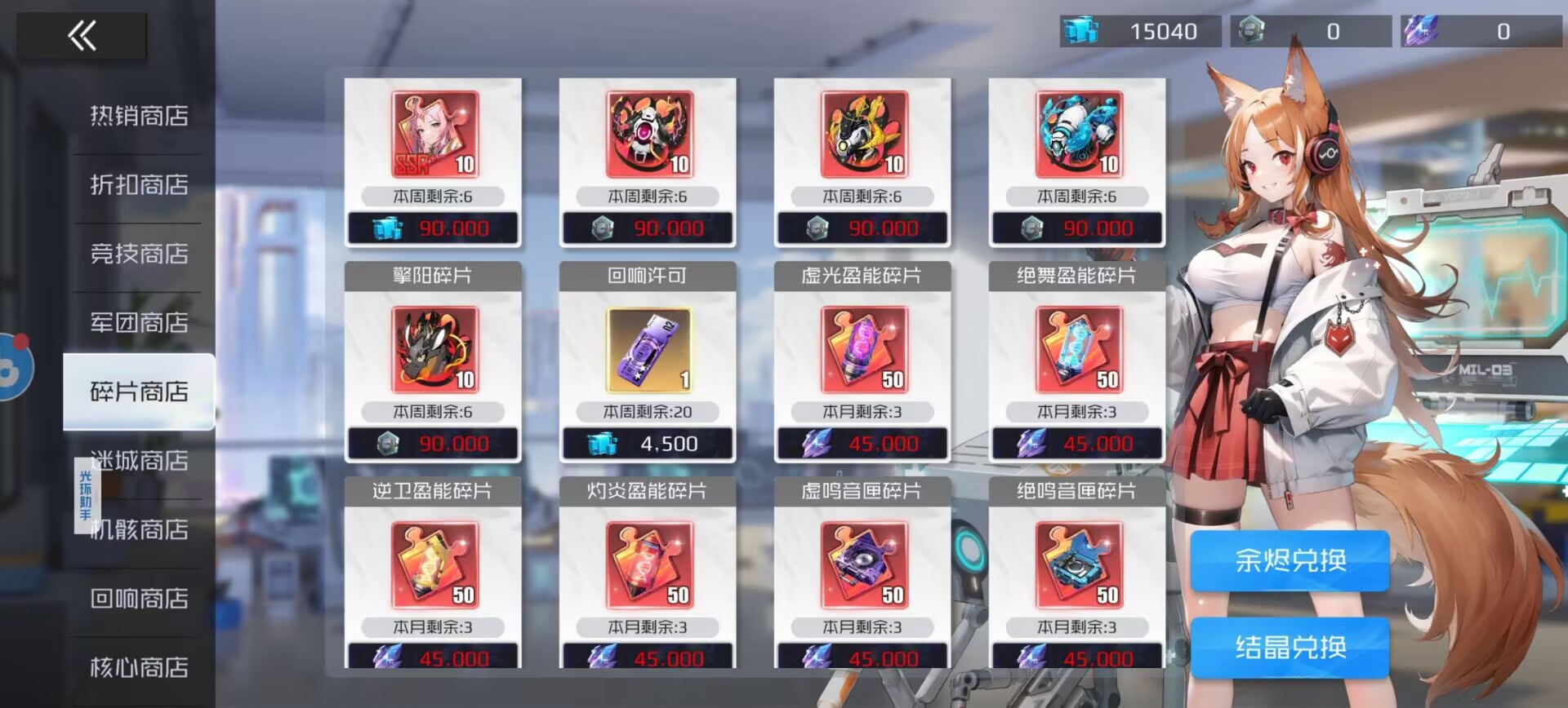 ①【结晶币】优先兑换:高级回响、自己对应阵容的角色。