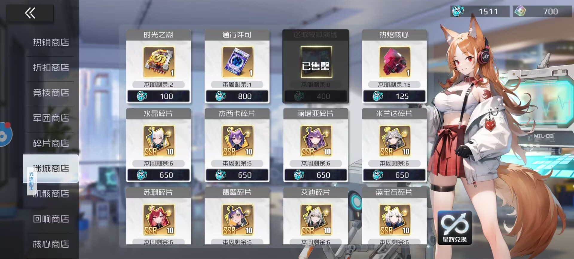 ①【凝智晶】优先兑换:通行许可、模拟演练、热熔核心、UR星灵自选。