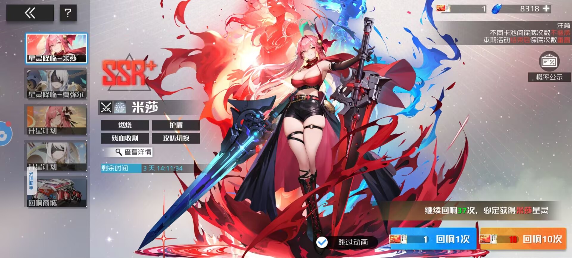 ③抽取建议:如果能和【米莉娅】一起抽当然更好,这样搭配米莎+罗蕾+米莉亚+缇娜灼烧队直接毕业了。