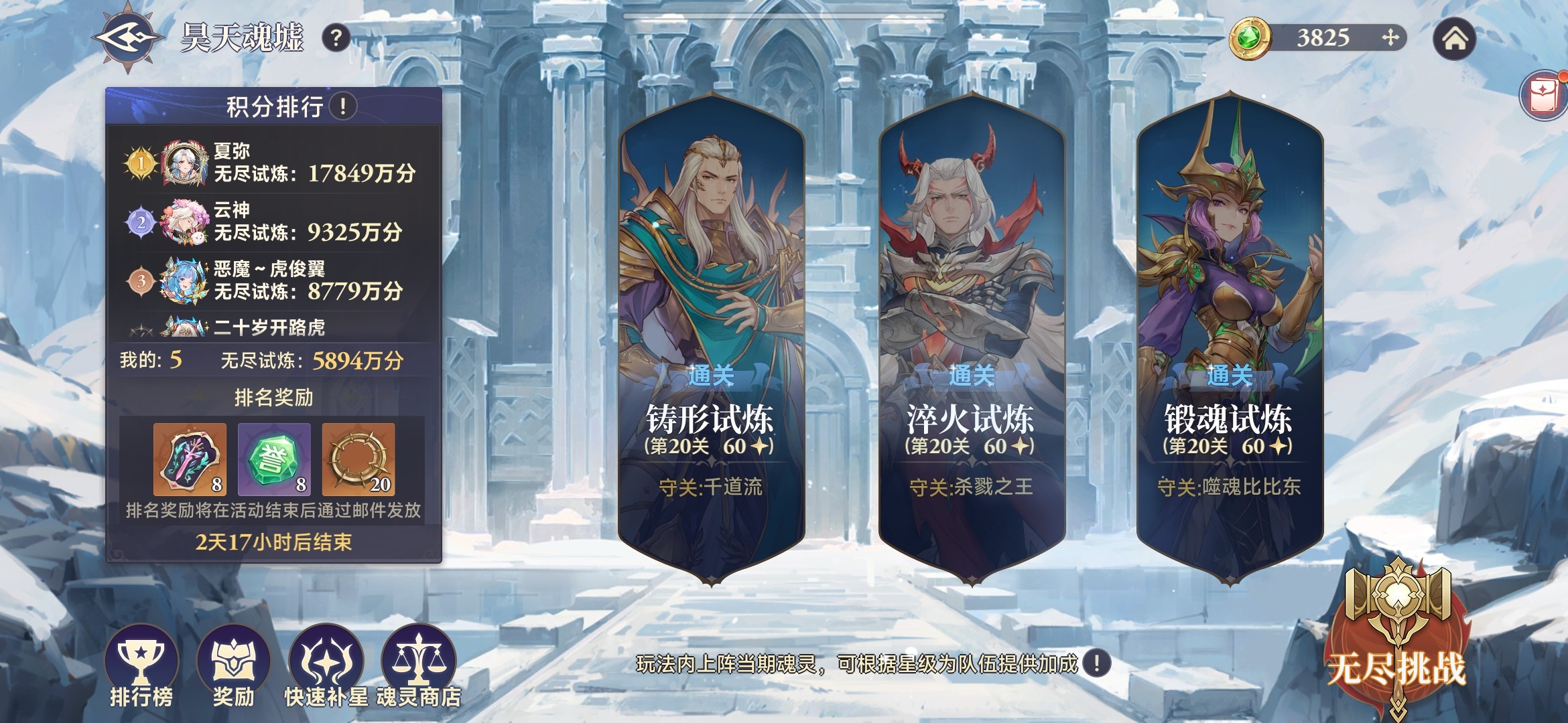 作为传说限定魂灵的专属活动,随着“幽冥白虎”魂灵的上线,最新一期昊天魂墟同步出现,还是采用无尽挑战模式,玩家根据排名情况获得奖励。下面,让我们深入了解一下这个活动的玩法。