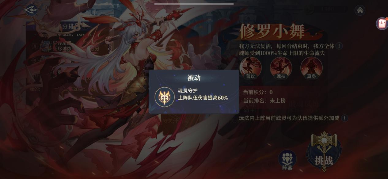 ④满星通关上述3个试炼后,可以进行【无尽挑战】,该模式只有修罗小舞这一BOSS,根据玩家造成的伤害进行排名。