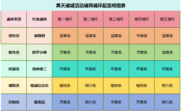 【无尽挑战】属于长图挑战,所以魂环选择上侧重于长线输出,将强攻系第四魂环、敏攻系第五魂环的前三回合输出魂环替换掉。辅助系、控制系佩戴爬行系魂环能增加对位和灼烧伤害。