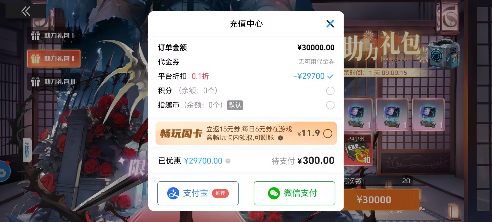 打完0.1折每个礼包也还需要300元。虽然是0.1折扣,但是这个价格也丝毫不便宜,普通玩家根本无能为力。