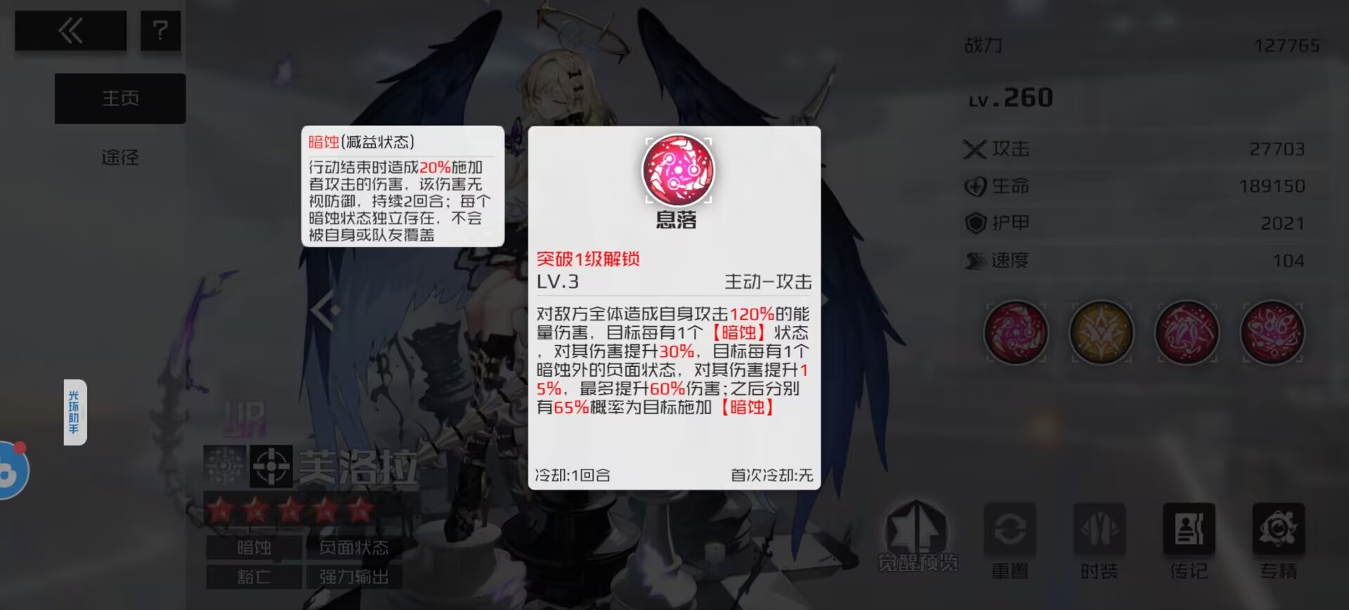 ②特点作用:能够给敌人挂【暗蚀】负面和给我方挂【光耀】增益效果,正是芙洛拉和露薇娅所需要的机制。