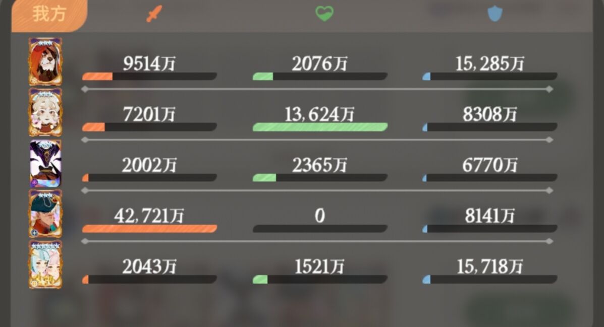 斧熊前排抗伤同时破防提升队伍的伤害输出,这套阵容是目前在普通和困难难度下伤害最高的一套阵容。