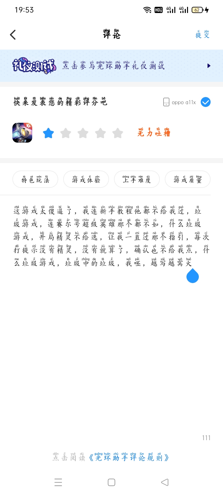看这个,我的有些字屏蔽了,这是我第一次吐槽游戏