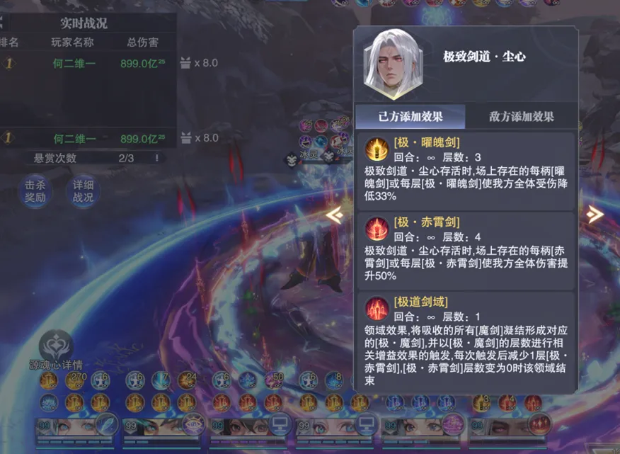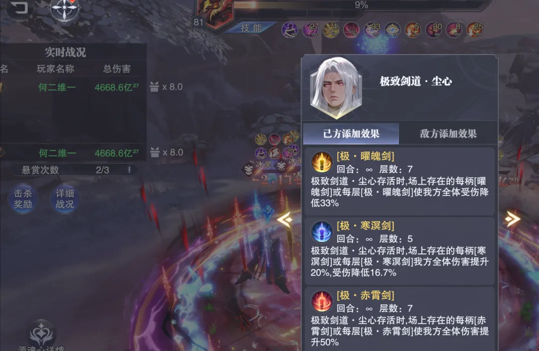 - 点了蓝色的“剑花”,意味着激活了全队队友新增的【极意·无尽剑霜】技能效果