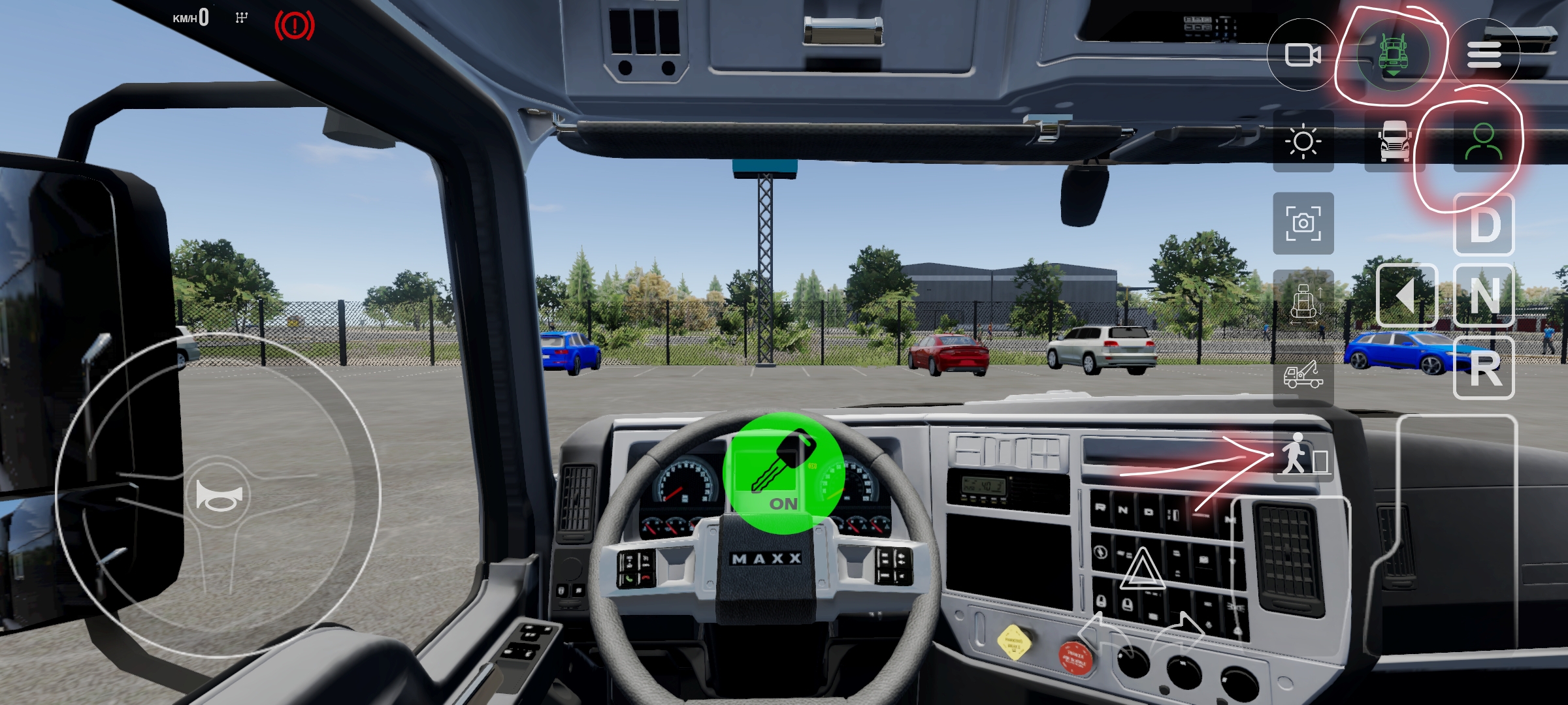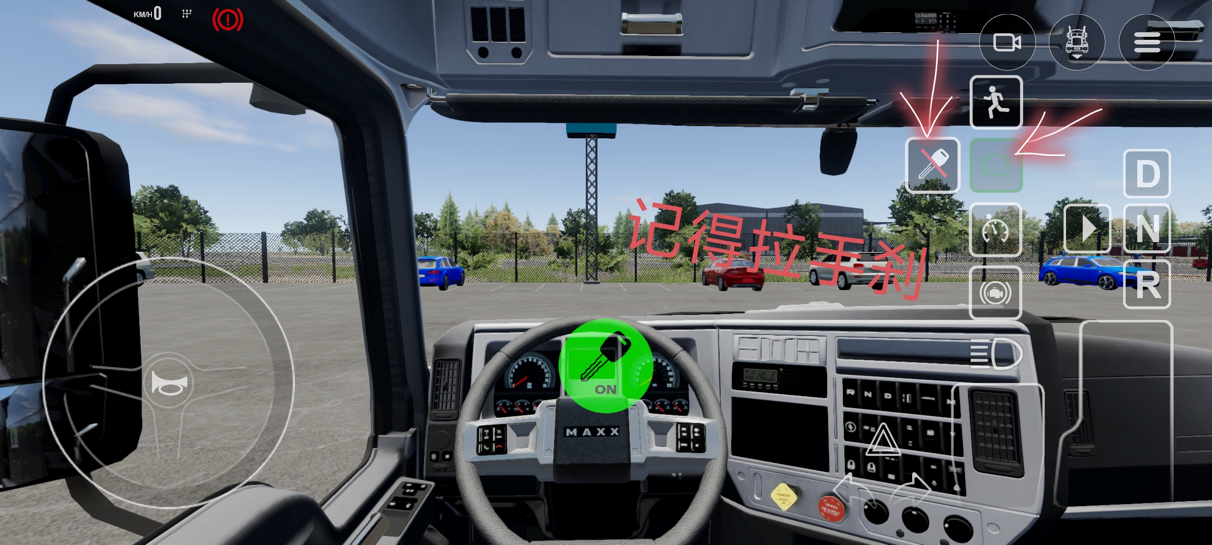 教你们怎么让司机休息:先点N档旁边的箭头,然后把钥匙拔了,再点开人物,点拖车下面这个,就可以了(前提是必须车辆必须是这MAXX个车型)