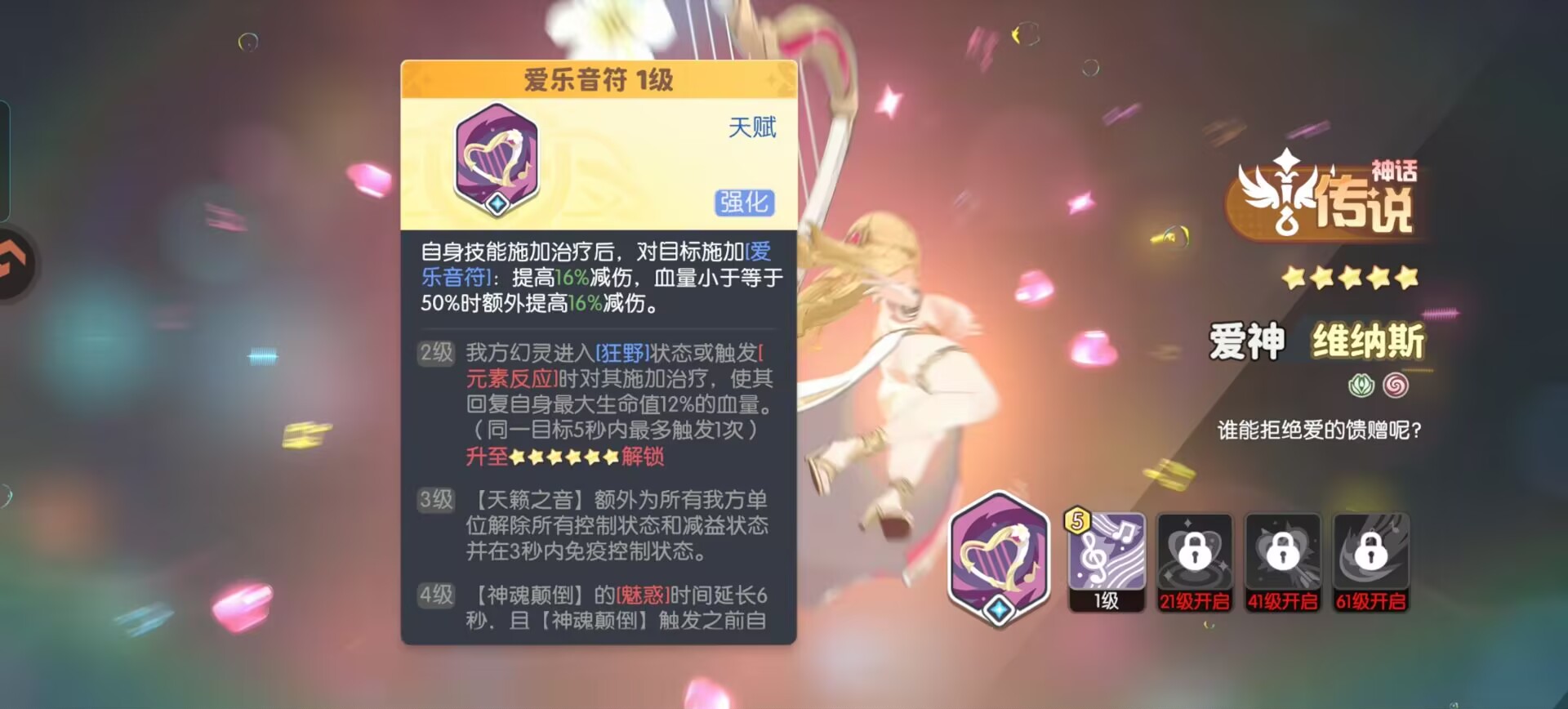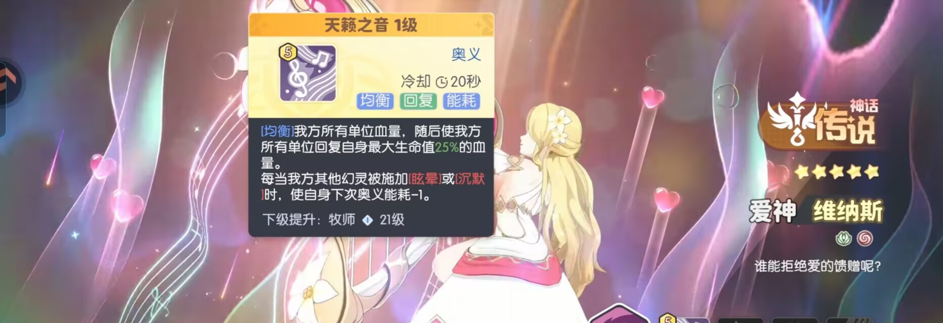而维纳斯的奥义不仅可以回血,只要队友被控制就可以减费,配合上天赋还有减伤解控免疫等效果。
