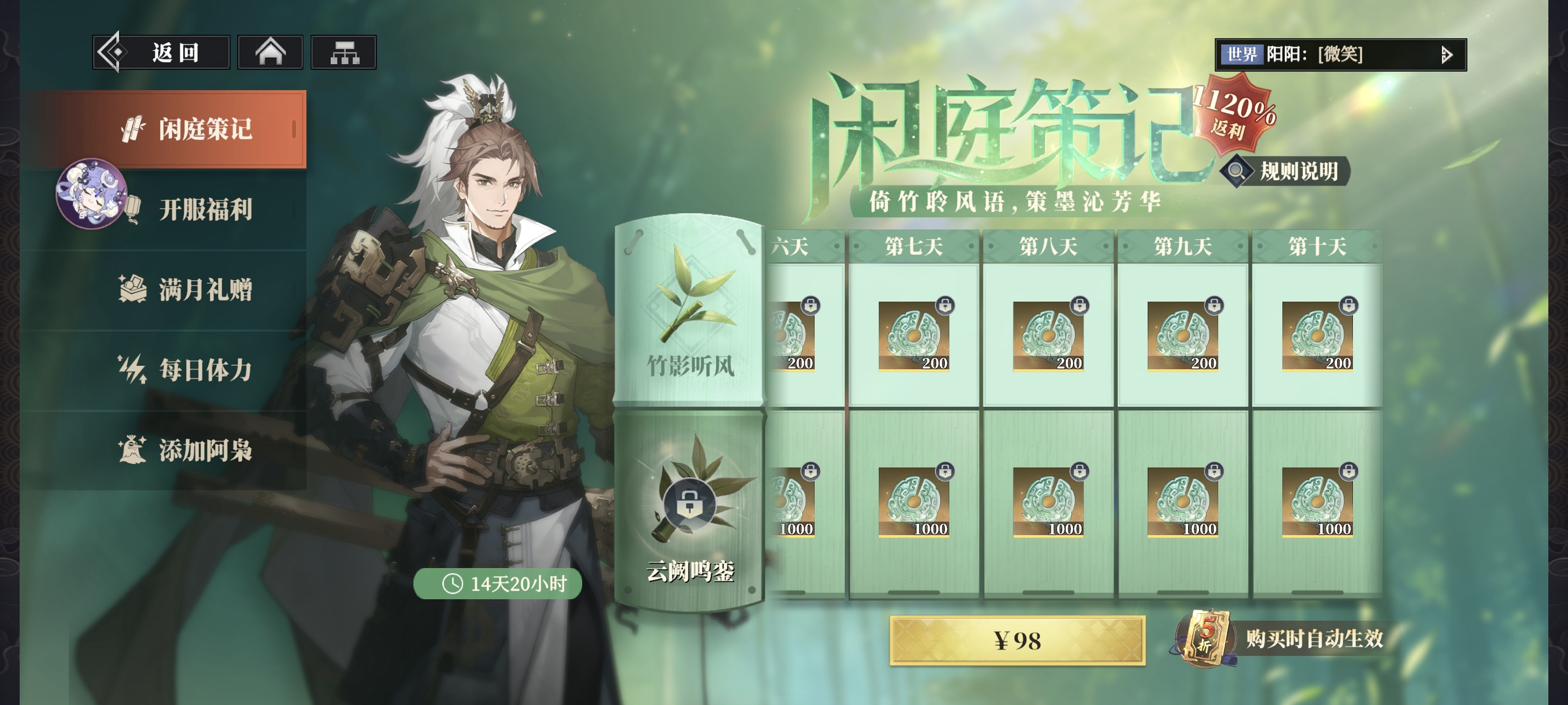 限定武将庞统的伴生活动,活动可获得庞统本体1个、大量三山壁、心愿抽风物抽各10个、大量精铸养成材料等。