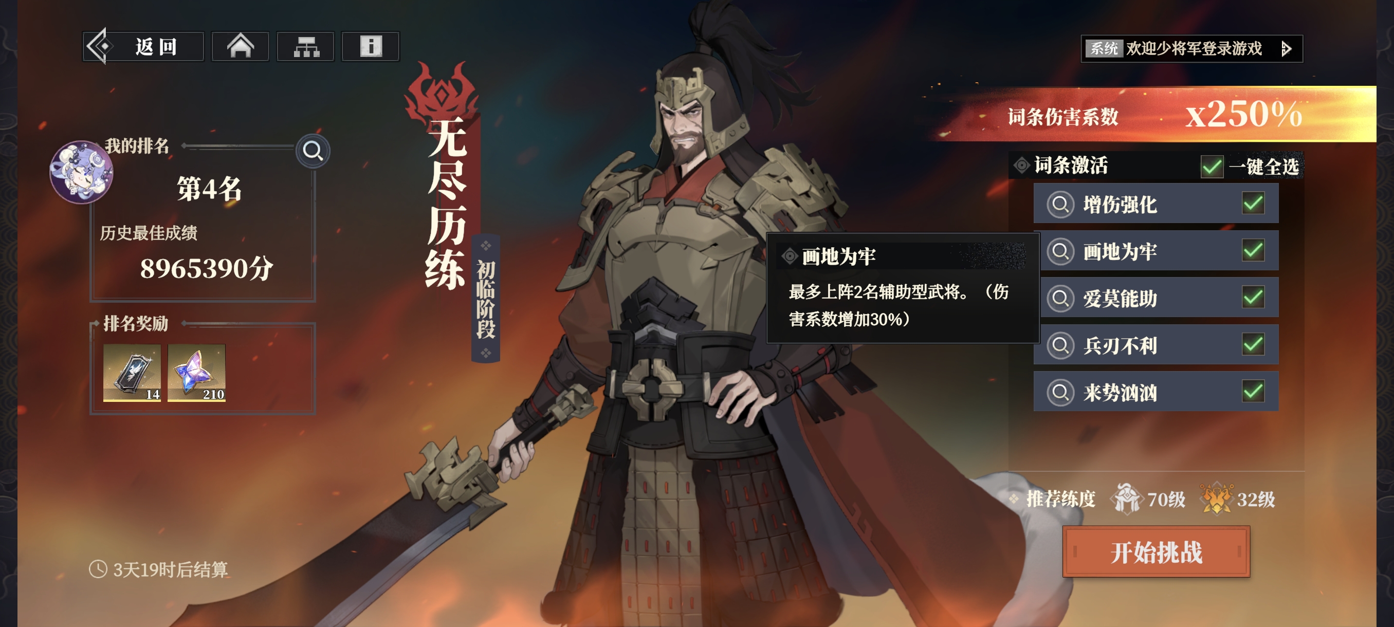1、画地为牢限制了我方辅助武将的数量,不能上最适合刷分的多将军体系。