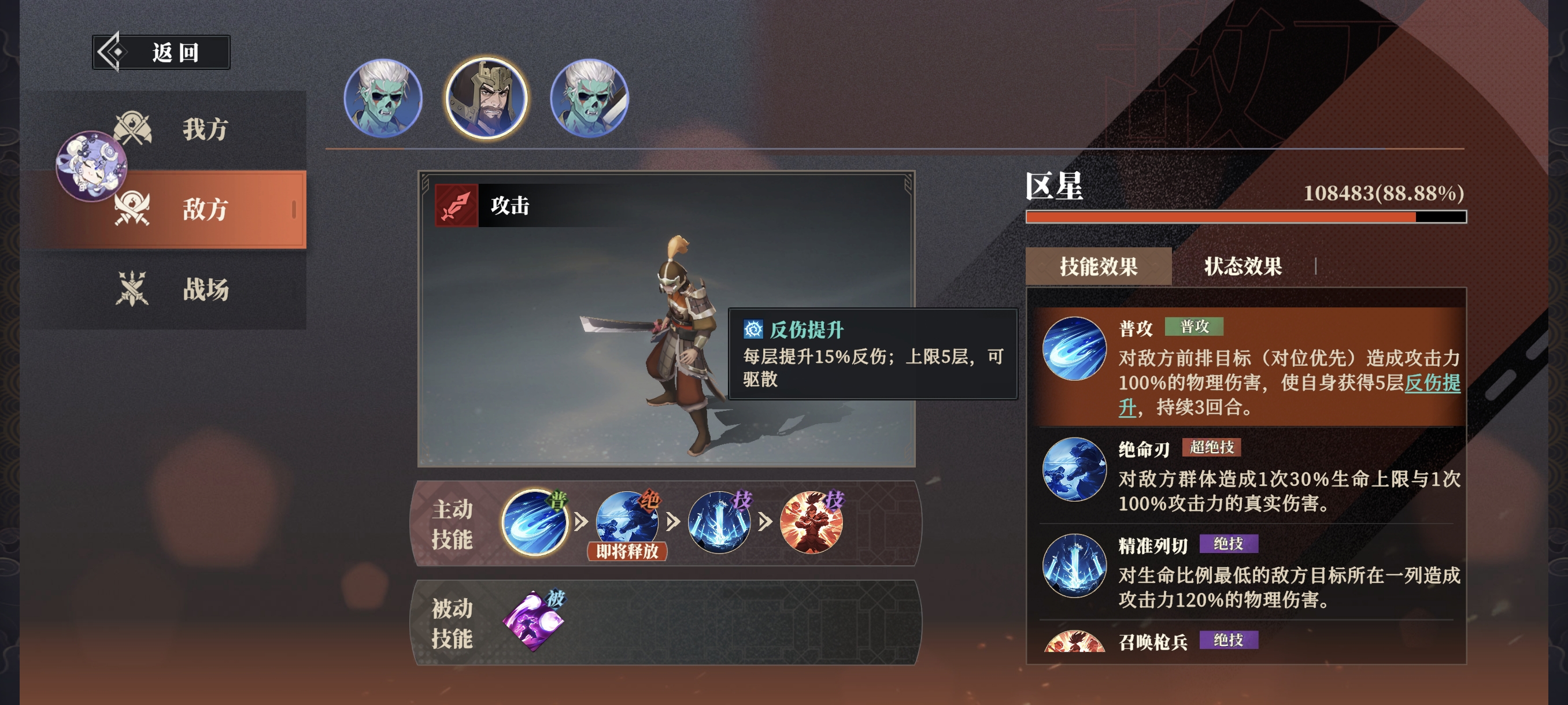 2、爱莫能助限制了我方防御和辅助武将通用技能不再回战意,但不限制攻击武将,这点后面布阵会用到。