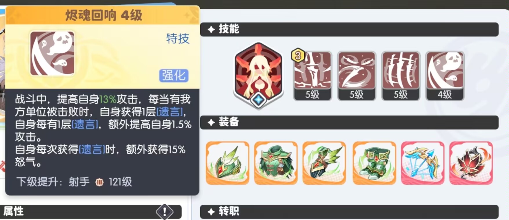 在战斗中能够提升自身10%攻击,有队友或者召唤物被击杀,就可以额外获得1层遗言。