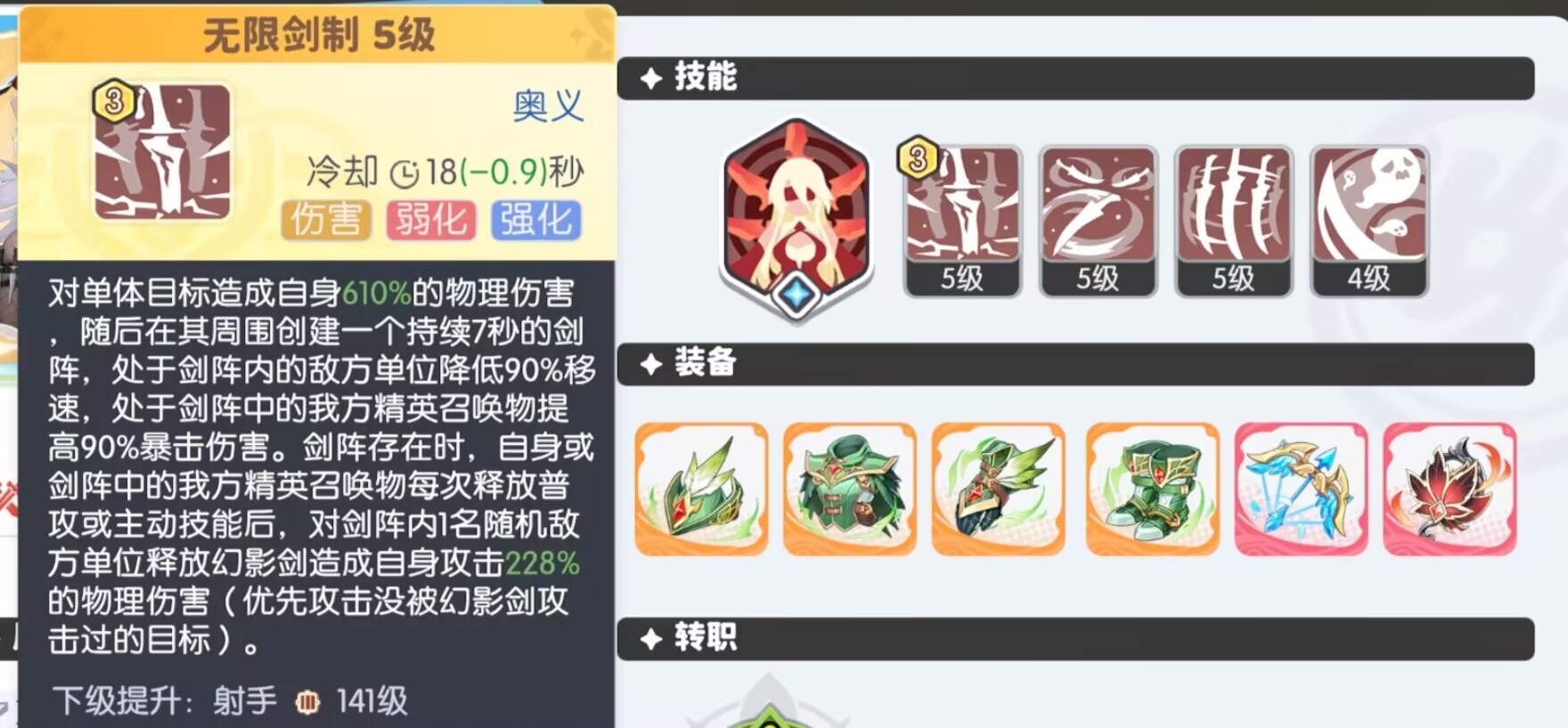 天赋4级:也就是升到红一,可以解锁让奥义剑阵质变,奥义剑阵可以限制敌人的作战能力。