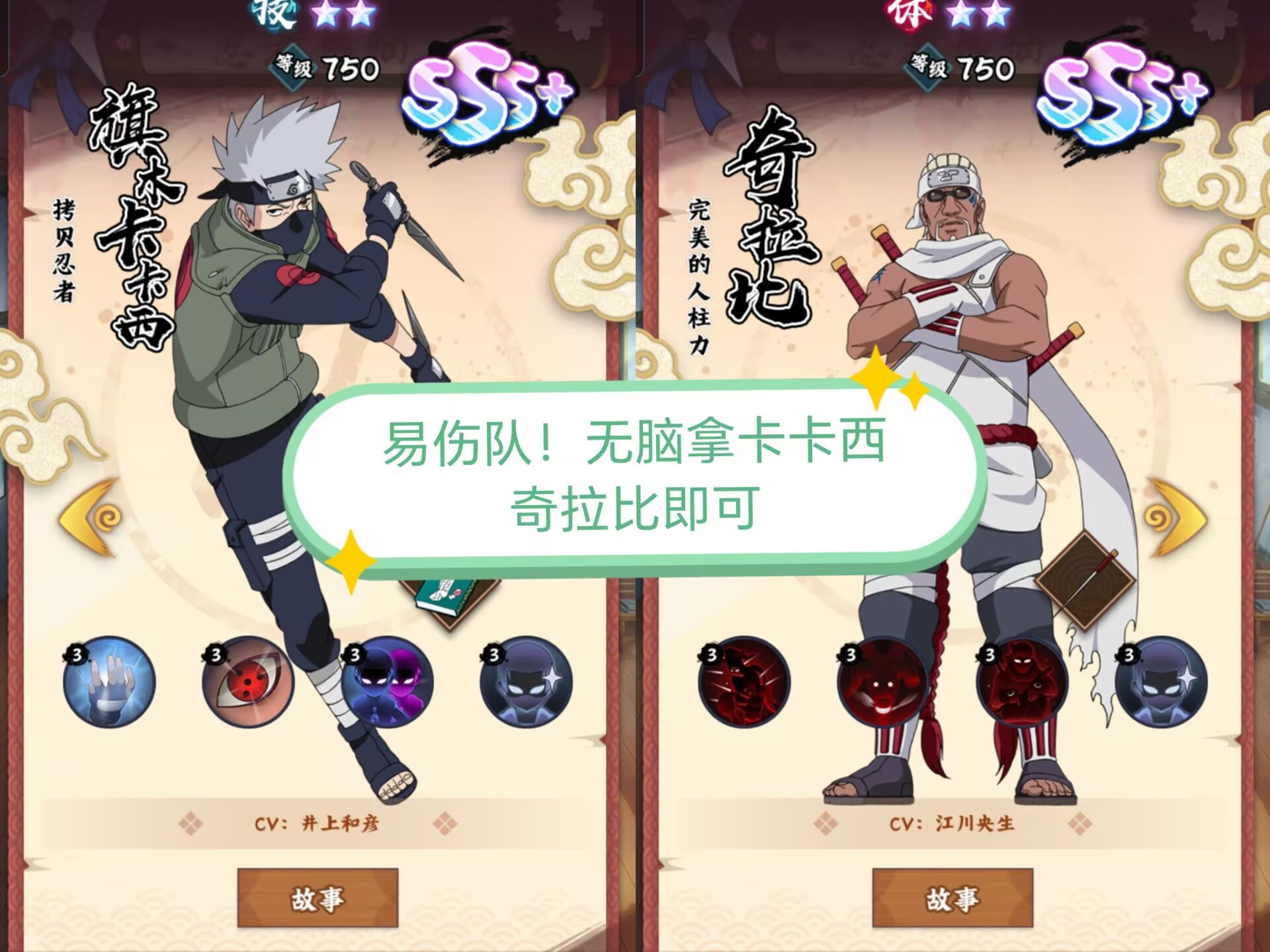 ps:如果是易伤队的玩家直接无脑拿【卡卡西】【奇拉比】就行。